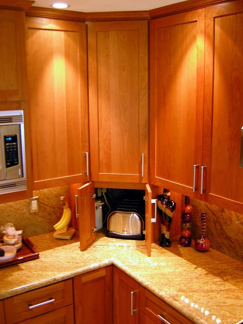 キッチンのコーナー部分を利用したトースター収納。