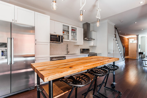 カウンターキッチンやダイニングテーブルの真上には、同じデザインのエジソンランプを等間隔で吊り下げるとオシャレ度がUPします。