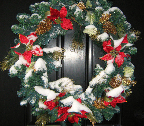 リースをリボンでグルンと巻かずに取り付けた例ですが、手前に回してもよいかも。