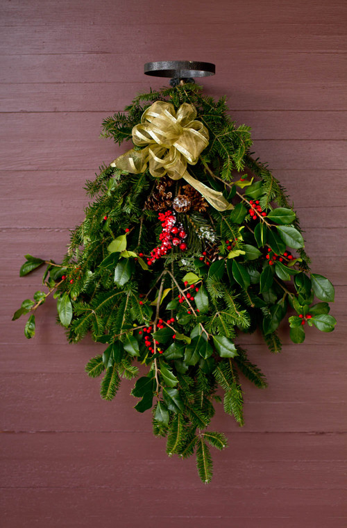 1個前の事例と同じく、モミの木や針葉樹を下向きにレイアウトして作ったリースの例。