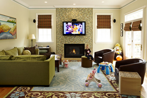 リビングではなく、子どもと一緒に遊ぶ地下室の事例ですが、こんな個性的な配色のお部屋があったらテンションが上がりそう!