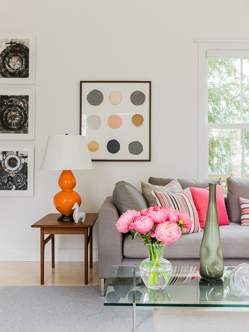4.ソファとアートで作るグレー×ピンクのインテリア例
