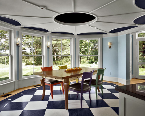 天井の色とチェアの色を同じティファニーブルーにするアイデアも、とても参考になります。