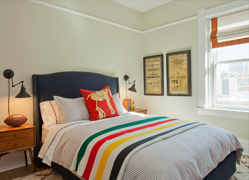 ストライプ柄は、寝室をカジュアルに演出してくれるアイテム。