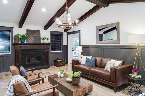 黒の腰壁+ベージュの壁のリビング例。