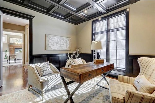 黒の腰壁+白っぽいベージュの壁の仕事部屋例。