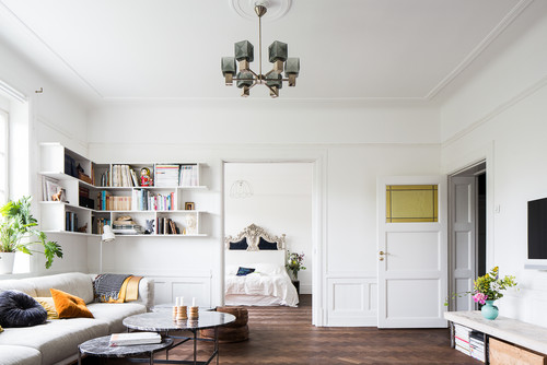 北欧インテリアのカラー使いの基本であるホワイト・グレー・黒のうち2色を壁に取り入れた、センスを感じるコーディネートです。