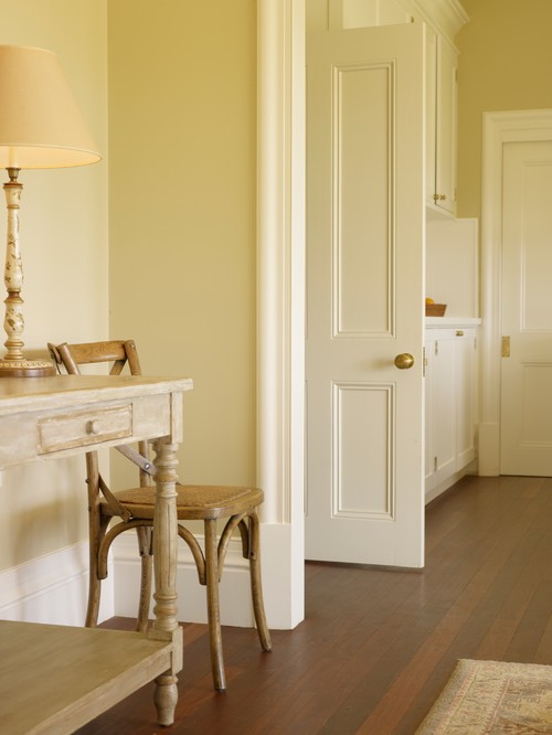 モールディング仕様のホワイトドアと真鍮の握り玉の組み合わせ例。